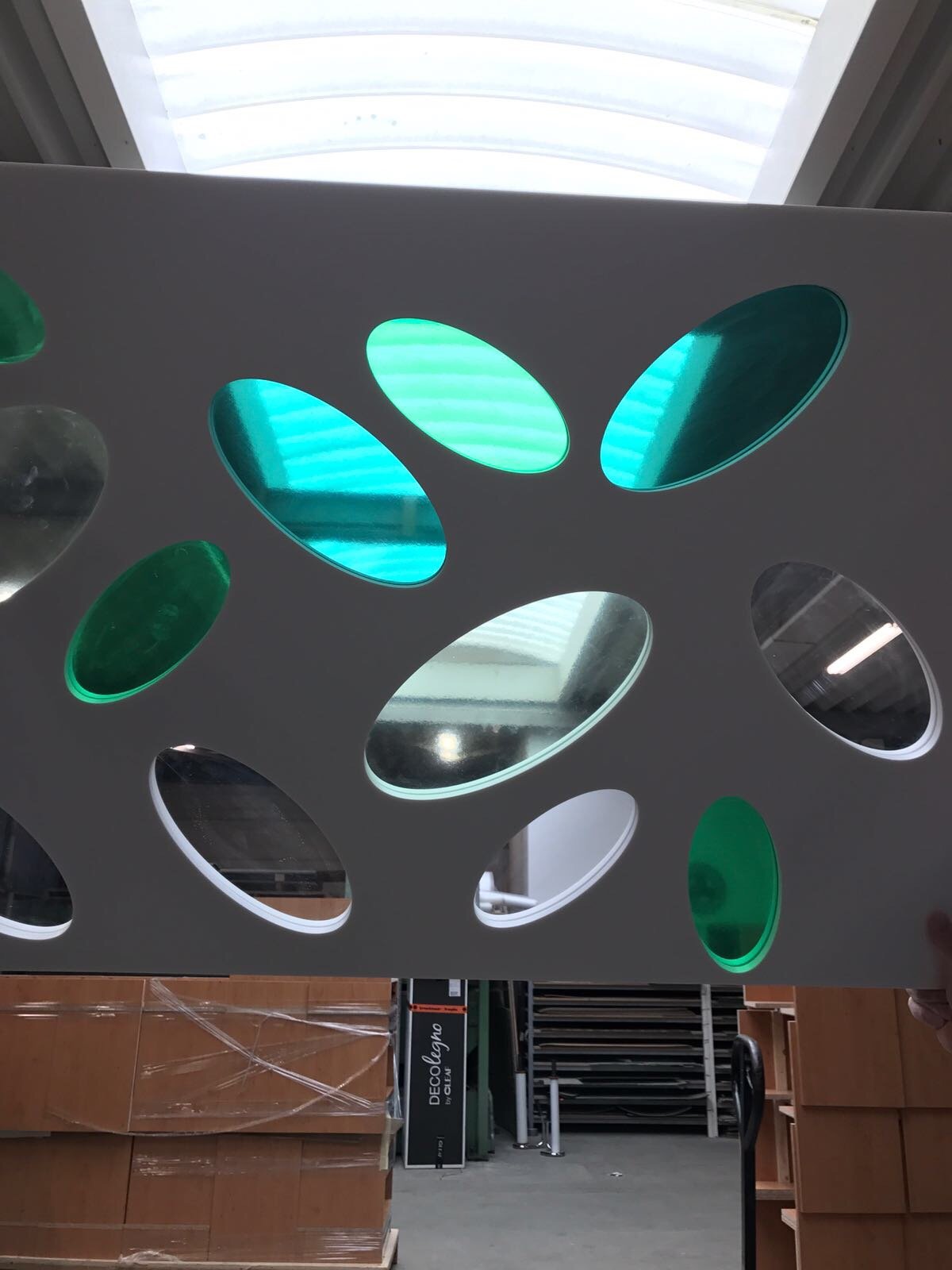 Design proposal for the Geberit headquarters lobby in Switzerland, focused on transforming the space into a more calming and welcoming environment. Inspired by the tranquility of nature, the concept introduces organic forms, natural tones, and greenery to soften the architectural atmosphere. The main feature wall combines Krion, an innovative, eco-friendly mineral material with vibrant colored recycled plexiglass elements, creating a contemporary, sustainable, and uplifting brand experience.