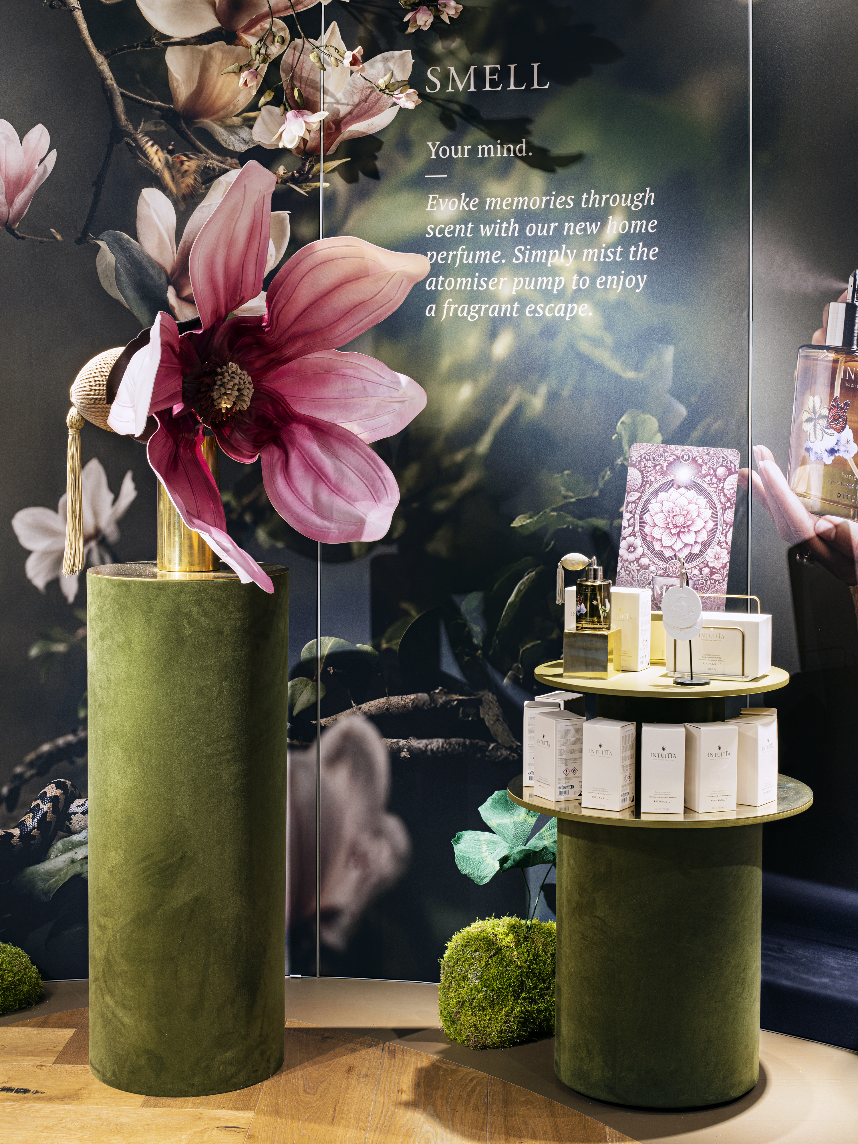 Intuitia is Rituals’ limited-edition Autumn/Winter collection, inviting you to listen to your inner voice. Designed to ‘create space for your intuition,’ the collection explores totem animals and an inner compass, expressed through the in-store installation.